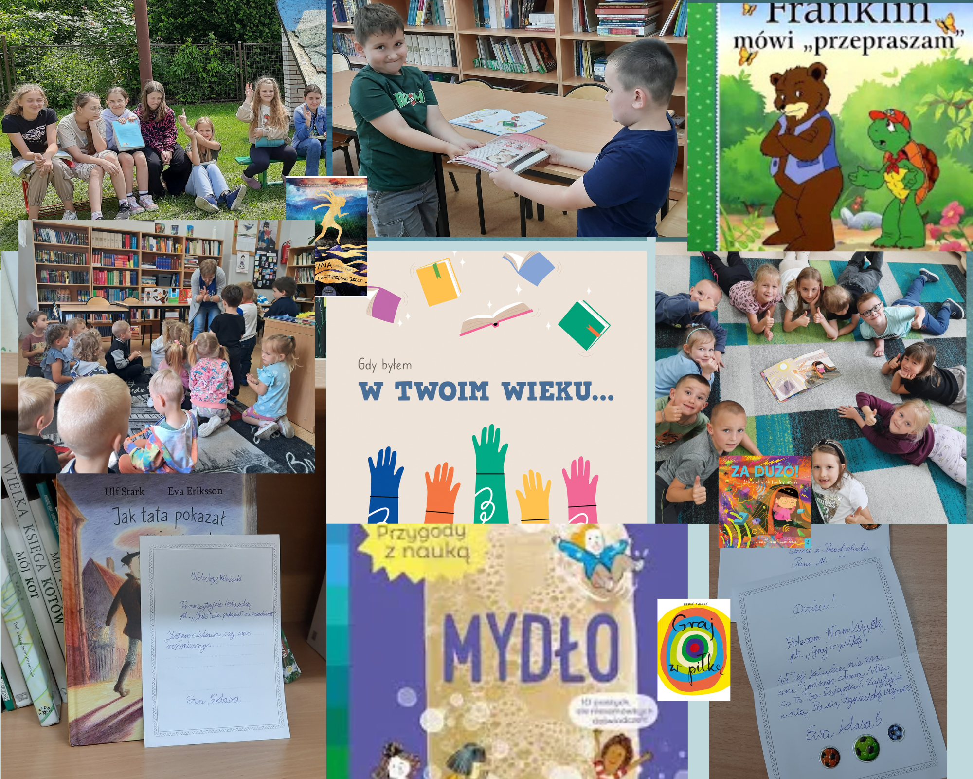 Klasa 4 i 5, zeróweczka Pani Doroty oraz dzieci uczęszczające na zajęcia do Pani Agnieszki znalazły czas na #czytanienapolanie i włączyły się do akcji.