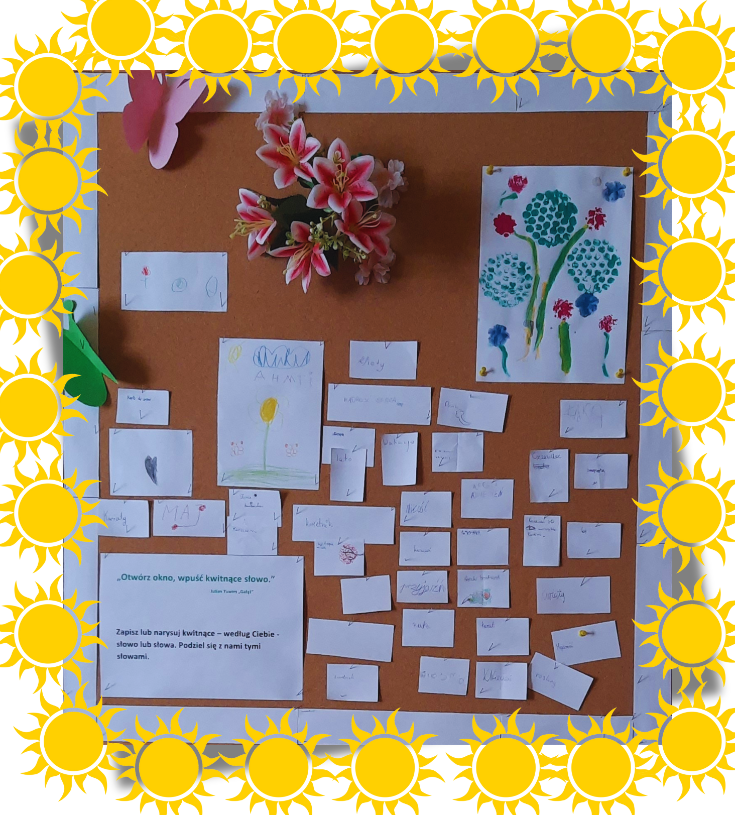 Słowa z wiersza J. Tuwima pt. "Gałąź" były hasłem ostatniej zabawy czytelniczej w tym roku szkolnym. Czytelnicy zapisywali lub rysowali słowa, które uważają za kwitnące. Być może przy okazji poszukiwania takiego słowa... zastanowili się również nad znaczeniem cytatu z wiersza autora "Lokomotywy".
