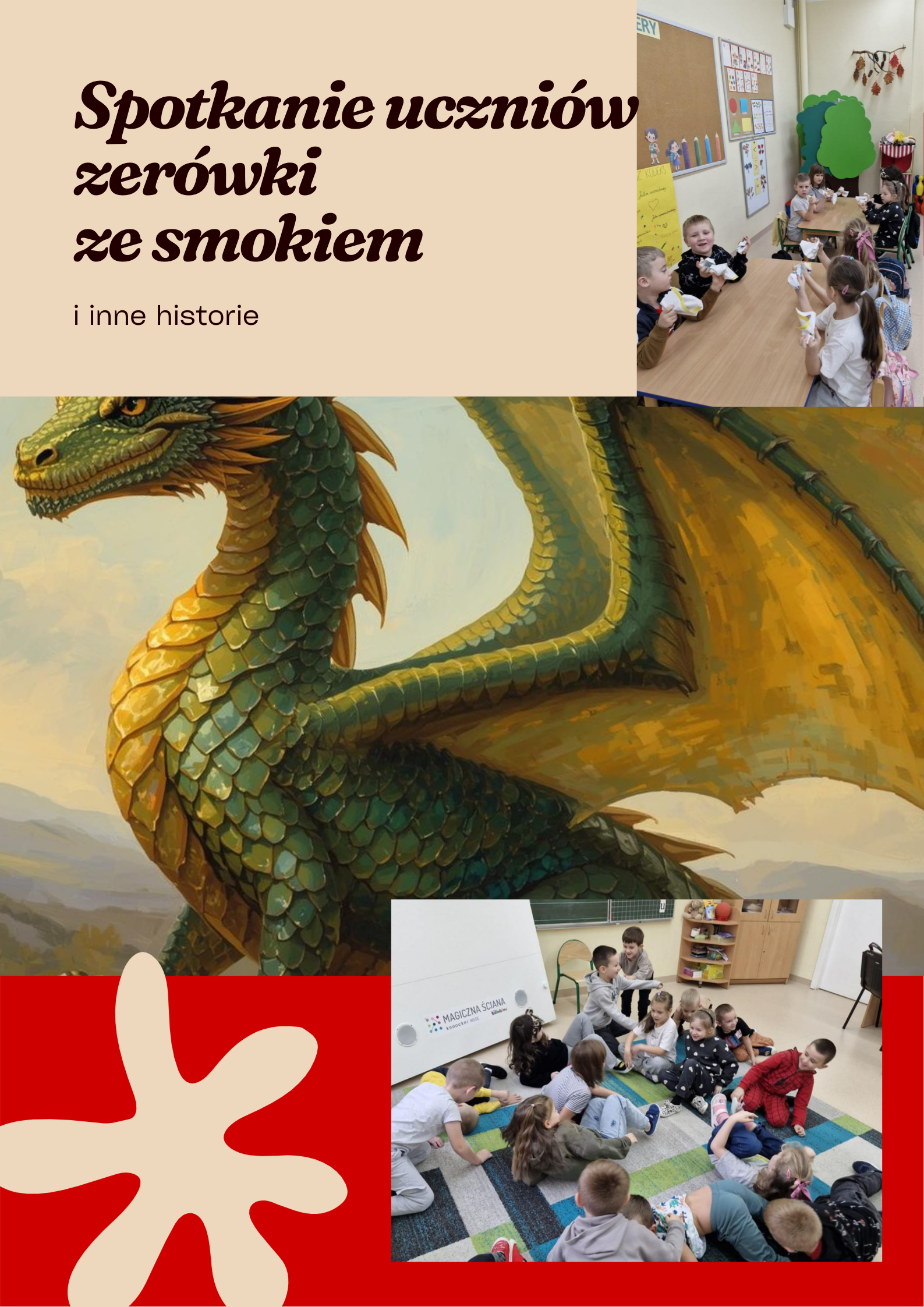 Uczniowie zerówki wzięli udział w zajęciach, podczas których poznali historię „Smoka spod Wawelu” W. Widłaka. Wysłuchali tekstu, a następnie wspólnie opowiedzieli całą historyjkę o smoku. Potem zamienili się w aktorów i odegrali teatralną scenkę inspirowaną opowieścią.