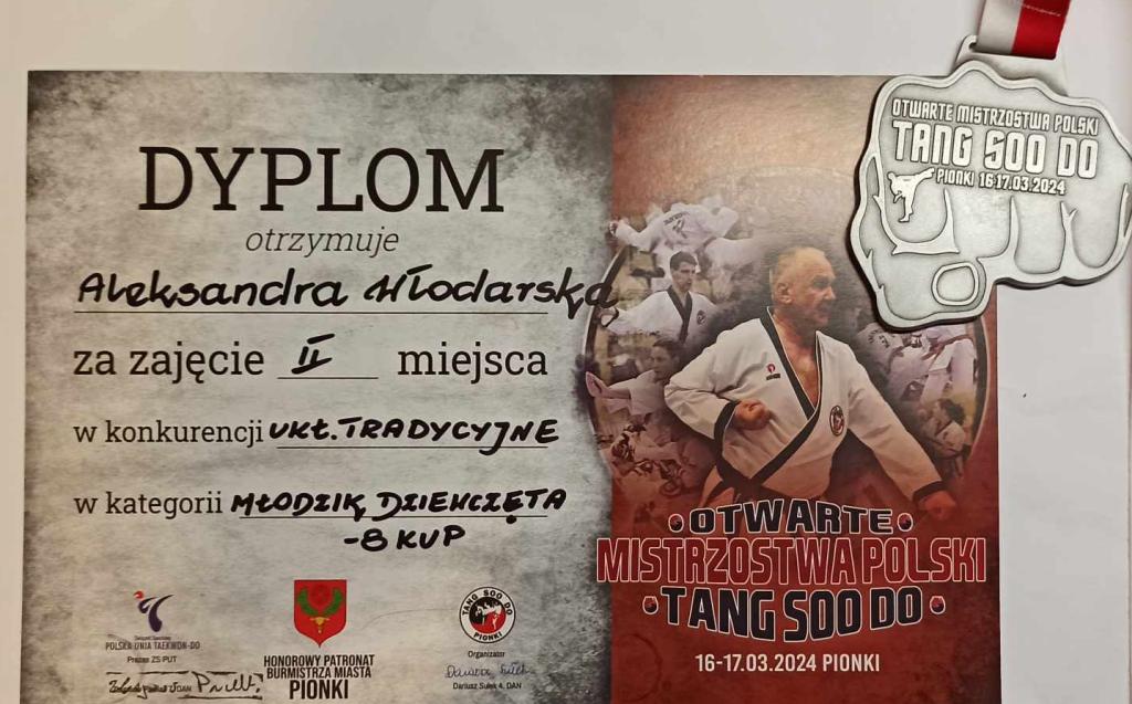 Na ostatnim międzynarodowym turnieju Taekwondo Polish Open Cup w Opolu zdobyła 2 złote i jeden brązowy medal w kategoriach: układy formalne, soft stick oraz techniki specjalnie. Gratulujemy wytrwałości w treningach i dalszych równie wspaniałych sukcesów sportowych.