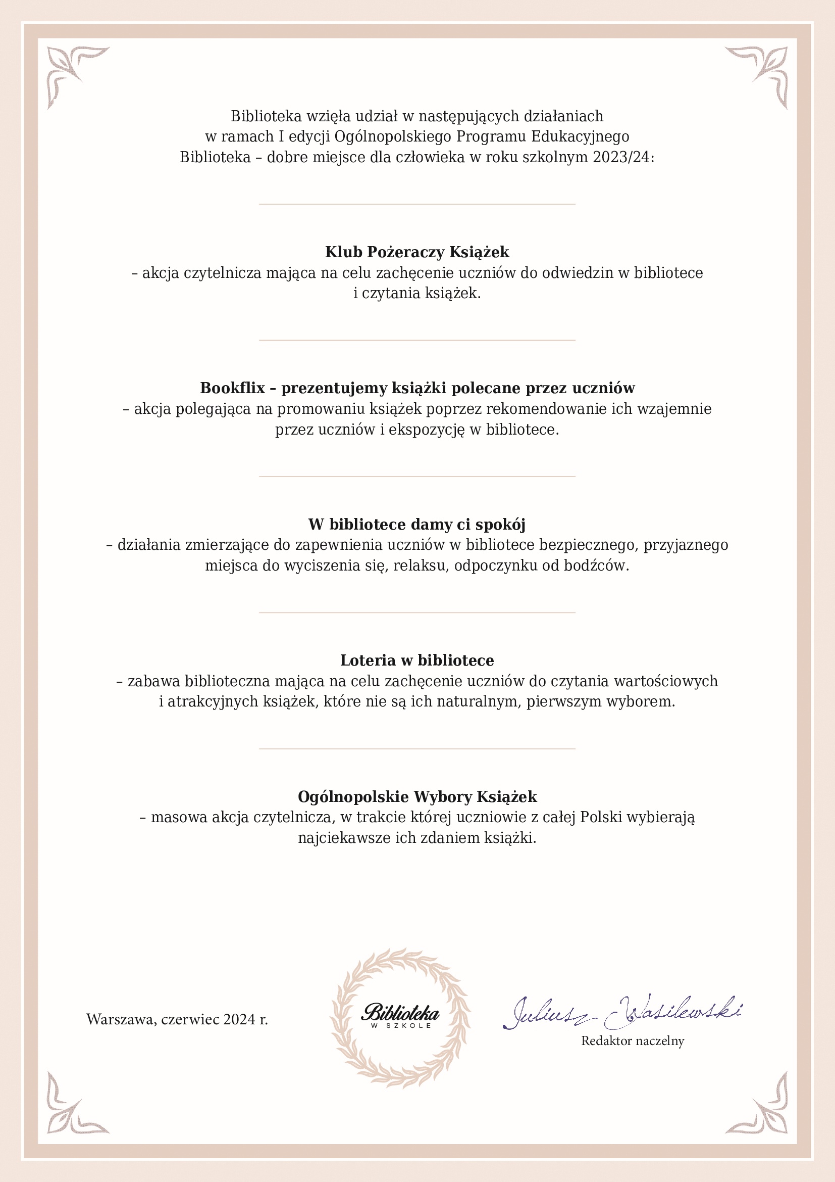 W maju i czerwcu 2024 r. biblioteki i szkoły z całej Polski zorganizowały masową akcję, w trakcie której setki tysięcy uczniów zagłosowało na najciekawsze książki przeczytane w ciągu ostatnich dwóch lat.