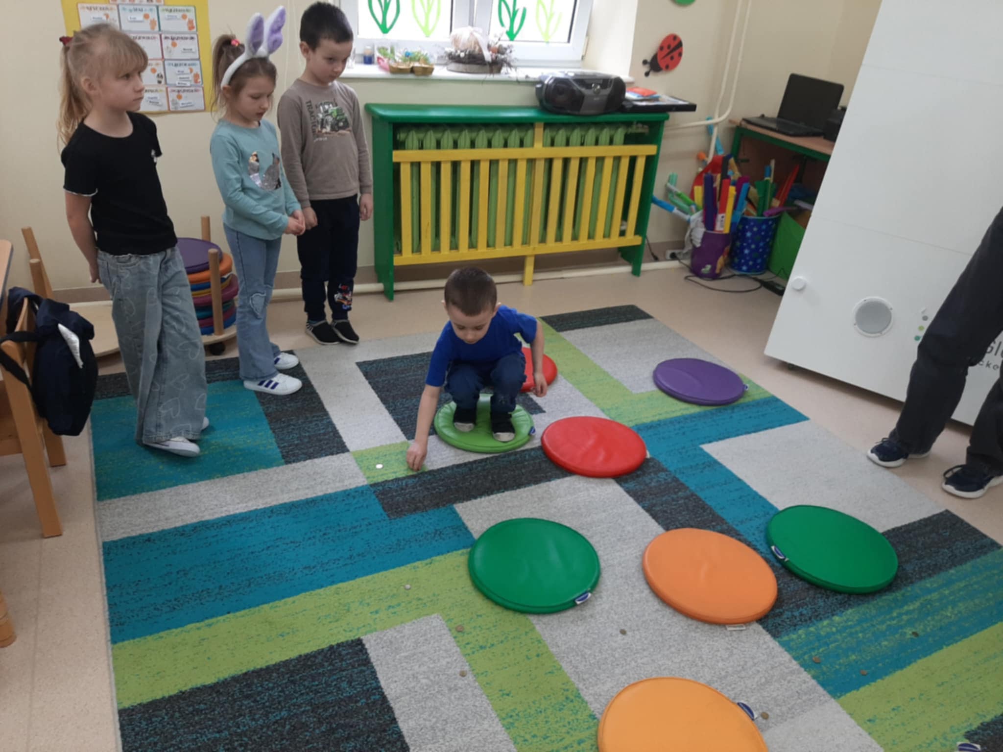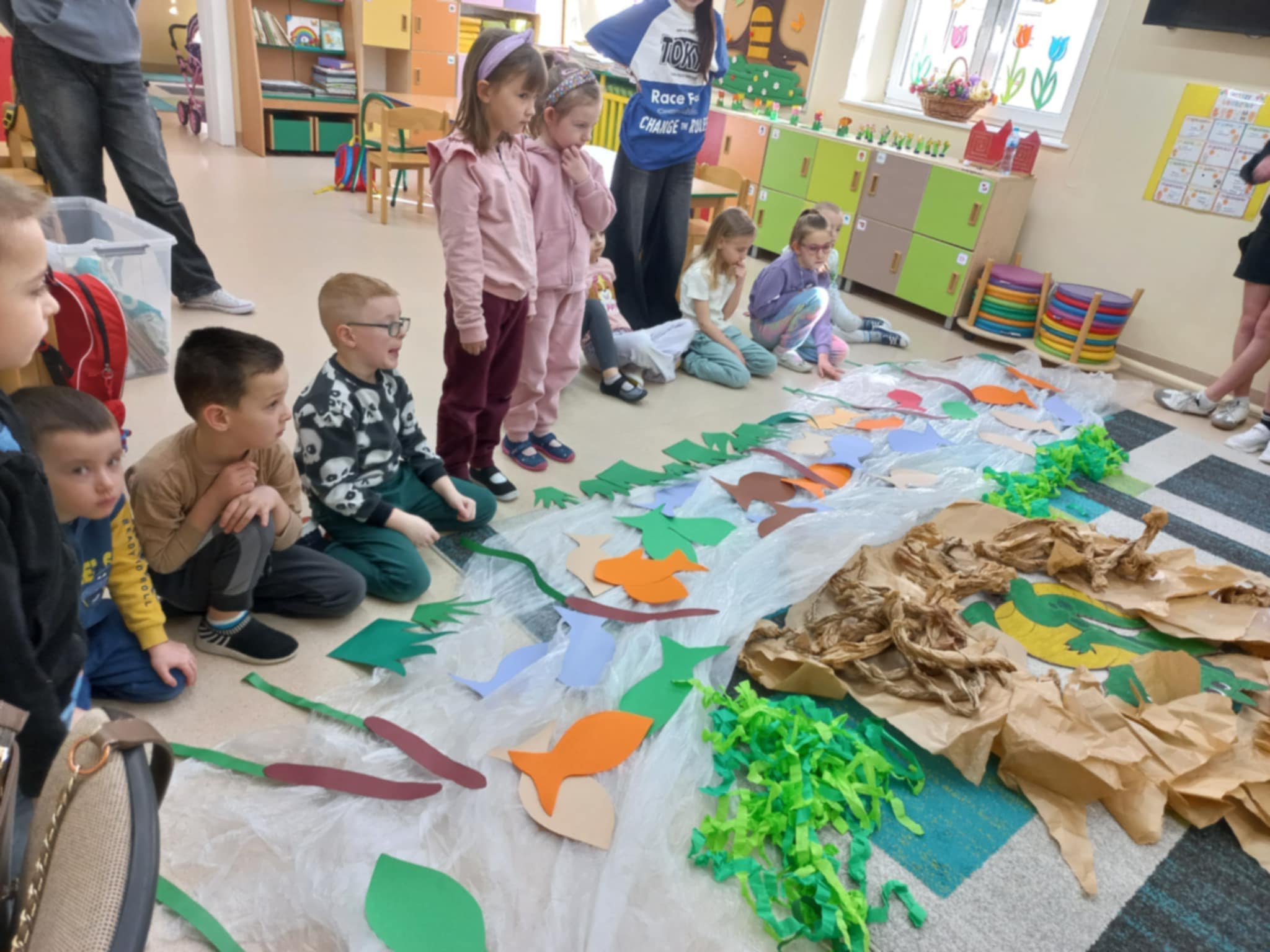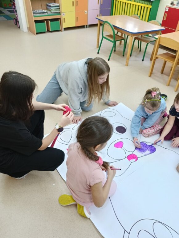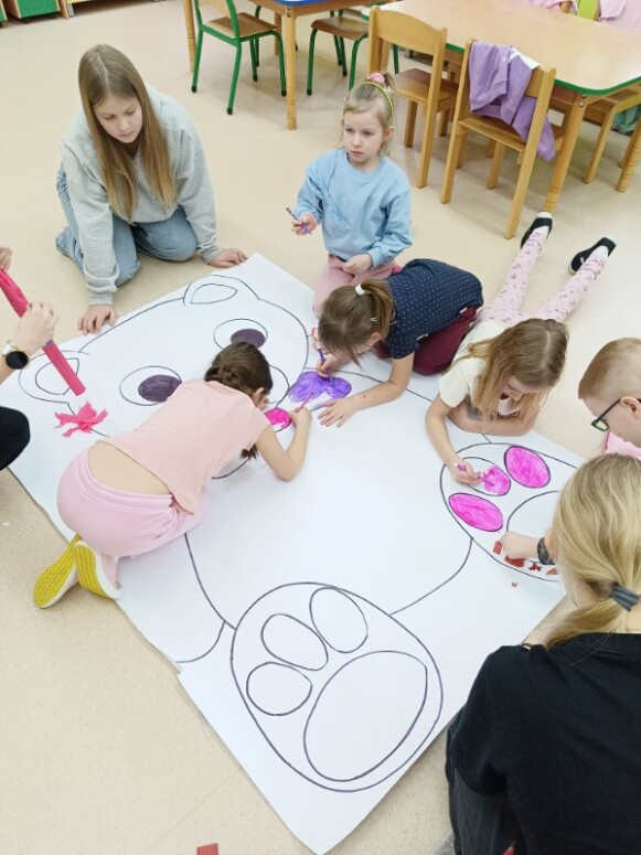 W drugiej części spotkania dzieci pod kierunkiem uczennic z kl. 6, wykonały kreatywne zadania: ożywiły las, rzekę, pomalowały gipsowe jeżyki.