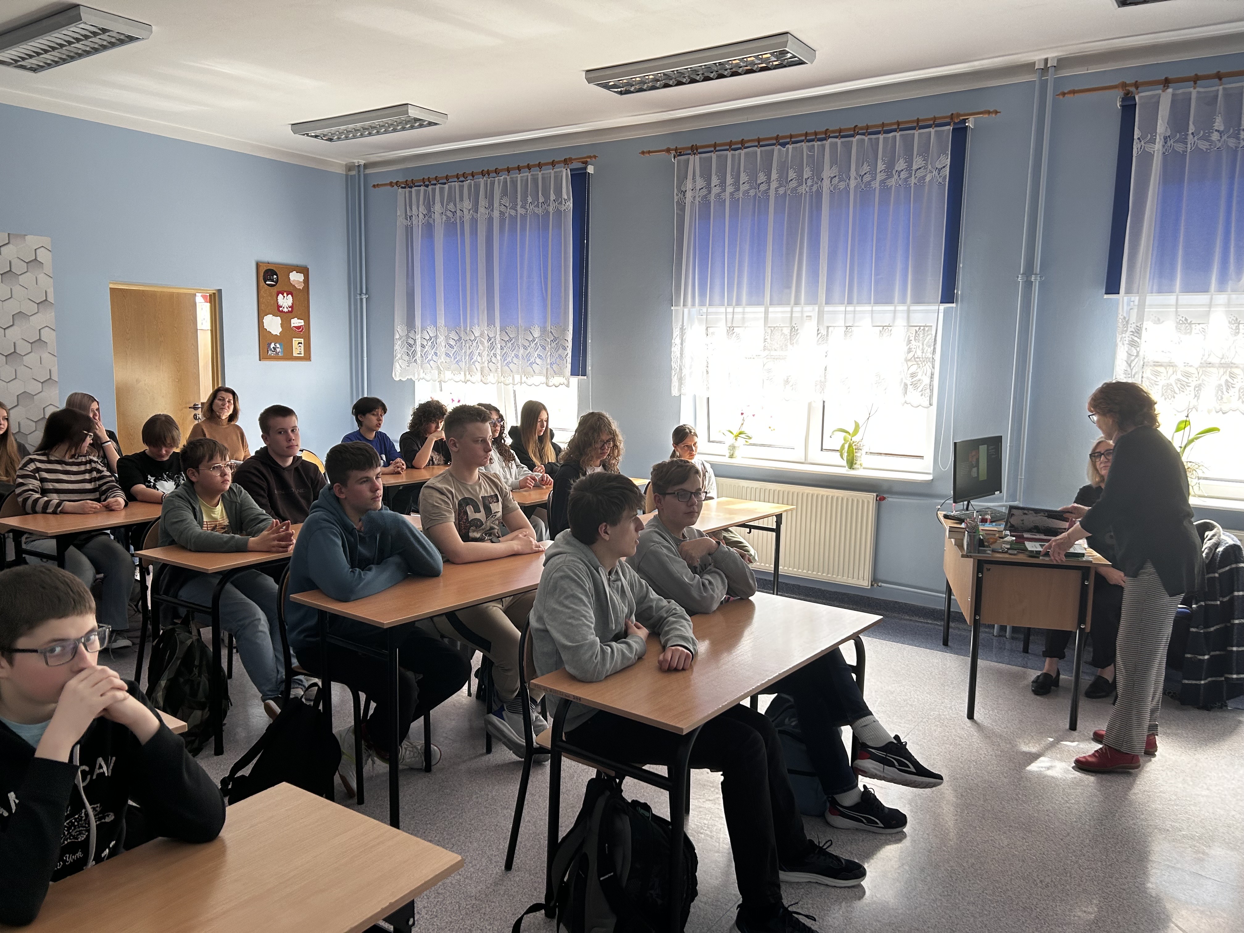 W dniu 30.10.2024 roku klasa VIII udała się na radomskie lotnisko, a dokładniej do Centrum Naukowo-rozrywkowego, które znajduje się w terminalu odpraw. Uczniowie zapoznali się z historią światowej i polskiej awiacji, poznali zasady dzięki którym olbrzymie metalowe maszyną są w stanie wzbić się w przestworza z setką ludzi i bezpiecznie odstawić pasażerów w dowolne miejsce na świecie. W drugiej części, uczniowie mieli możliwość praktycznego przetestowania lotu na symulatorze, zabawić się w kontrolera ruchu lotniczego, pokierować księżycowym łazikiem oraz sprawdzić swoje predyspozycje pilota na żyroskopie, gdzie kształtować można orientację przestrzenną oraz koordynację wzrokowo-ruchową. Opiekunem grupy był wychowawca klasy Dariusz Czyżewski.