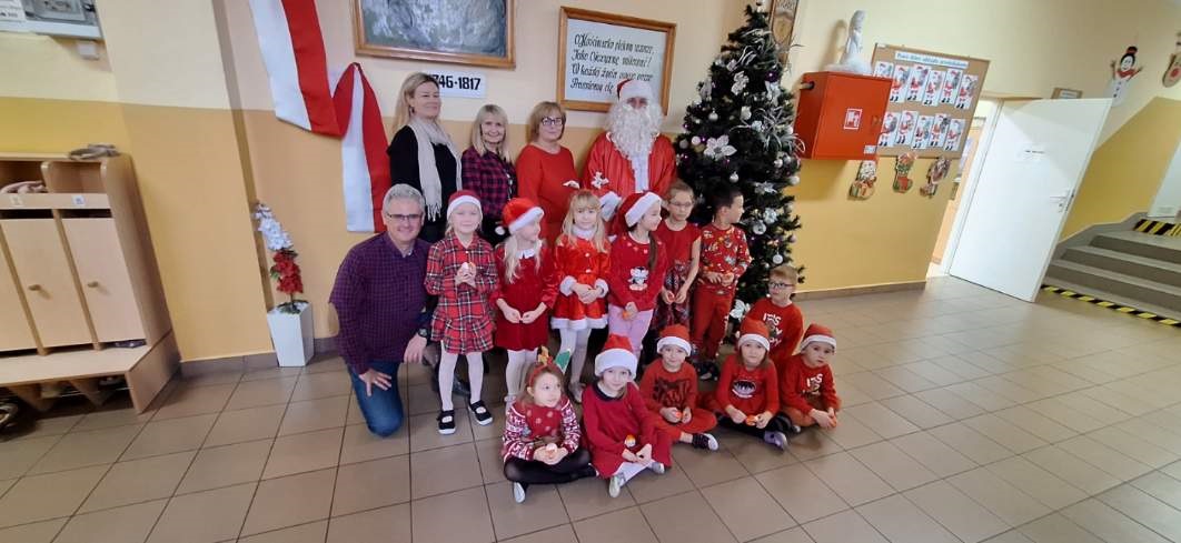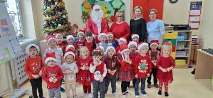 Oddział przedszkolny oraz przedszkolaków odwiedził również Mikołaj, którego do nas przysłała Pani Wójt Katarzyna Konopska. Obdarował on dzieci słodkimi upominkami. Serdecznie dziękujemy Pani Wójt Katarzynie Konopskiej oraz pracownikom Gminnego Zarządu Oświaty i Sportu na czele z Panią kierownik Alicją Olszewską za miłą niespodziankę.