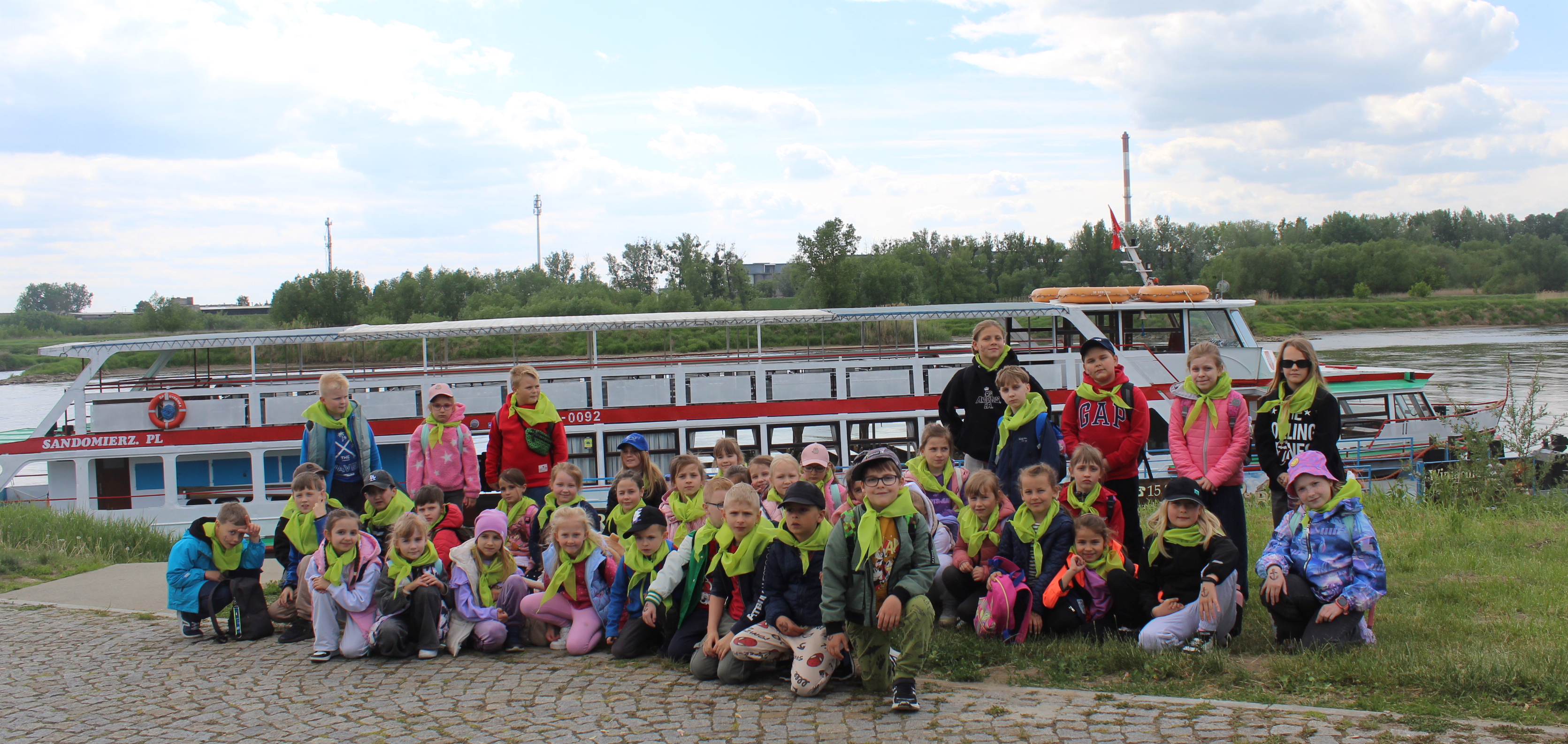 7 maja 2025 roku dzieci z klas 0-III były na wycieczce w Sandomierzu. Swoją turystyczną przygodę rozpoczęły od rejsu statkiem po Wiśle i oglądania panoramy miasta. Z pokładu było widać m.in. Zamek Królewski, katedrę, Dom Długosza, Góry Pieprzowe. Po rejsie pani przewodniczka zabrała wszystkich na spacer po urokliwym Wąwozie Królowej Jadwigi. Następnie przez Ucho Igielne dzieci dotarły do ogromnego pierścienia z krzemieniem pasiastym. Zwiedziły Rynek, wędrowały Podziemną Trasą Turystyczną, przeniosły się w czasie słuchając opowieści rycerza Łukasza i przymierzając stroje w Zbrojowni Rycerskiej. Piękno Sandomierza uczniowie podziwiali również z punktu widokowego Bramy Opatowskiej. Po smacznym obiedzie był czas na kupno pamiątek i lodów. Dzieci zadowolone i pełne wrażeń wróciły do domów.