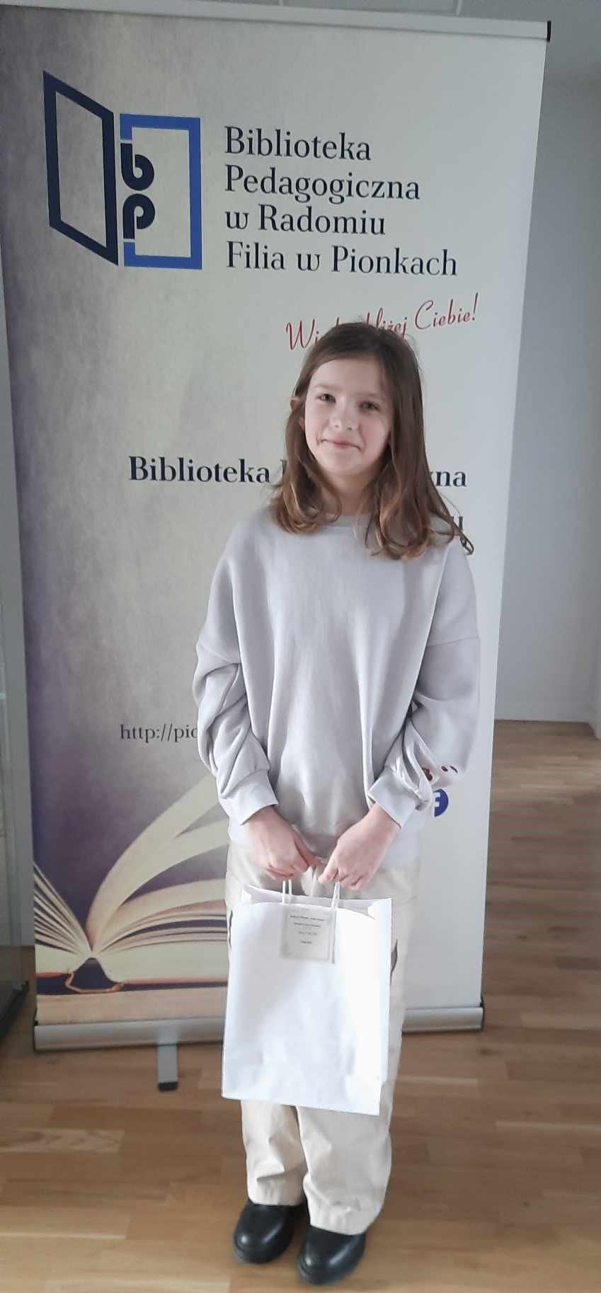 Uczennica Antonina Wasiak zajęła drugie miejsce i otrzymała nagrodę ufundowaną przez Panią Wójt Gminy Pionki o wartości 500 zł w postaci bonu do Galerii Słonecznej. Agata Dziekan również została laureatką konkursu.